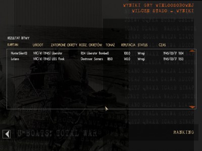 Na początku patrolu "wyrzuciło" Runio. Po 30 min "wyrzuciło" Huntera. Po godzinie gry Tes melduje, że został zatopiony. Ja w tym samym czasie posyłam na dno niszczyciel (jaki zobaczcie na zdjęciach)