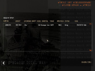 Po 10 min znowu się zanurzyłem ,żeby sprawdzić co tam rybki szepcą .Przede mną liczne statki i okręty wojenne ,a po prawej trzy dalsze pojedyncze cele . No to zwrot o 90 st i jazda . Nie eskortowany cel , będzie łatwa zdobycz . Po ok 15 min zauważyłem pierwszego cargo stimera . No to plusk po d wodę , zbieram dane do ataku .... srtrzelam i pudło , Cel walił "całą na przód " za nim kolejny ,to samo . Jako trzeci płynął jeszcze większy cel ,jakiś spory transportowiec coś ok 13000 , byłem już realatywnie blisko ok 800 m , ale znowu pudłuje . Po wynurzeniu się cel daje całą na przód i zwiewa . Zniesmaczony tym atakiem wyszukałem na hydro inne cele . Obrałem nowy kurs i po 10 min natrafiłem na konwój chroniony prze 3dd , . Dość niefortunnie sie ustawiłem i nie za bardzo miałem jak okazję strzelać ,ale jakoś się poskładałem i zdołałem trafić ostatni z 3 old pasangerów . Troszkę mi zajeło jego zatopienie . Na zakończenie z kpt Lutiensem podjeliśmy rozbitków .