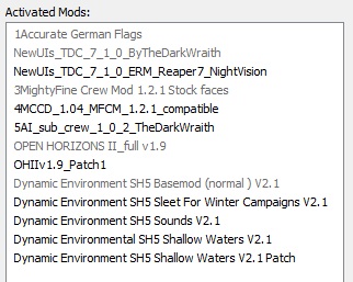 Już zerknąłem na instalacje TDC i faktycznie z opisu w wątku na subsimie wygląda to dosyć skomplikowanie. Do tego jest napisane że najlepiej grać na dialsach sh5 enhanced bo tamte się sypią. Powiem szczerze że chciałbym użyć tylko i wyłącznie wspomnianego żeby mieć jak najszybszą i najmniej konfliktową instalację. Dodam że będę grać bez celowania manualnego więc dodatki do niego nie są mi potrzebne. Patrząc na mody zainstalowałbym najnowsze TDC, OH2, accurate flags i pewnie mighty fine crew. Poza tym chyba już nic. Moje pytanie brzmi - jaka kolejność oraz jak najszybciej zainstalować TDC?