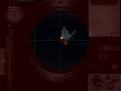 Zbliżamy się do konwoju.. Głębokość oceanu spada z 150m do 40m... Może trzeba było czekać przy głębinie? Ale zaatakowałem, gdy topili Lutjensa (chyba widziałem DD, co rzucał bomby). 1 dziobowa do latarniowca, co idzie na przedzie, aby wybadać prędkość. Pudło.... Więc chyba zła prędkość. Obrót o 180 stopni, bo idzie tłusty tankowiec... Ale ta krowa powolna. Odpaliłem salwę 3 torped na namiar 270, gdy ten zaczął skręcać. Tylko 1 torpeda trafiła. I odpływa. Obrót zakończony. Salwa 2 torped z rufy do troopa. 1 go wysadza, druga dobija... Na dziobie przeładowano 1 torpedę. Poszła w tankowiec, co wyleciał i połowicznie zatonął, co uratowało mi życie... Bo dziad zauważył peryskop (trochę za wysoko go wystawiłem, bo było ciemno i deszczowo) i DD przypłynął w pobliże. Po cichu się oddalałem.. 50 minut do końca... Gdy nagle zawracając DD trafił mnie pingiem... Ledwo uciekłem mu, choć miałem mocne przecieki... Gdzie uciekać? Ta krowa jest cięższa od pozostałych okrętów, a tu tylko 40m.... Ale patrzę... Wrak! Schowałem się pod nim i gubiłem DD... Ale jednak bez silników okręt wypłynął za wrak i DD znów mnie namierzył. Tym razem spudłował, a ja wykonałem duże koło i po 2 atakach niecelnych DD, znów znikłem za wrakiem... Jeszcze Clemson przypłynał na pomoc.... 20 minut do końca... Szukały mnie, ale nie znalazły... Za to muzyka zmieniała się, jak Mirko dobierał się do Lotniskowca.