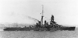 Zdjęcie przedstawia Hiei - japoński pancernik klasy Kongo, zatopiony w trakcie bity o Guadalcanal (prawdopodobnie) przez eskortujący go niszczyciel Shigure.