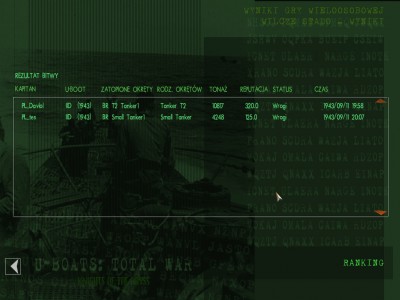 Znów kaczuszki , Patrol zaliczę do udanych choć 43 rok ale eskorta była ''głupia'' sam widziałem jak przepływały 300m blisko mnie niszczyciele a ja wysunięty peryskop i nic ... Na samym początku wpakowałem 3 torpy w C3 ale on ani nie drgnął.... , potem za cel biorę T2 strzelam a 30 sec później patrze eksplozja... Tesu uszkodził T2 a ja go dobiłem , niechcący bo już torpa była w locie ... Potem Szylol zgłasza KIA . Na sam koniec próbuje dobić stojące C2 ale po kolejnej tropie nie zszedł ...