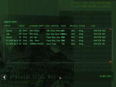 Brawa dla c0dzika, bo ścigany przez kilka DD zatopił jednego i UCIEKŁ! Pod koniec gry mógł spokojnie wyjść na peryskop!