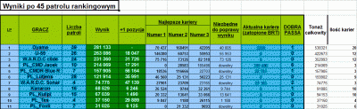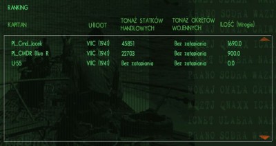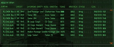Zamieszczam tabelę. Patrol 41 nie jest na forum (może płynący go powiedzą czemu?), ale dostałem 1 tabelę od U-55 i wieści, że wszyscy zatonęli. Taki wynik wpisałem do tabeli.