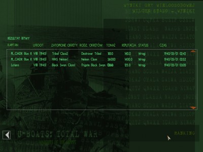 Potem zostałem już do końca gry pod woda, aż eskortowce odpłynęły.