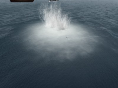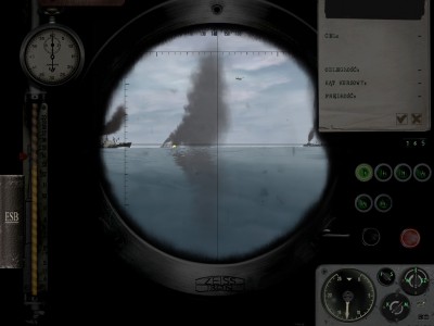 Ja spokojnie, zaczynam na powierzchni, prędkość pół naprzód, peryskopowa. Ogarniam hydrofon, konwój na lewo ode mnie, zmieniam kurs, płynę na konwój i wynurzenie. Chwilę po wynurzeniu (może 5 minut od rozpoczęcia gry) słyszę "Zauważono samolot!" Tak więc szybkie zanurzenie, samolot zaczyna ostrzał, zrzuca bombę, którą nie trafił dzięki Bogu. Podchodzę na pół naprzód na peryskopowej, gdy słyszę od hydroakustyka "Niszczyciel, odległość średnia, zbliża się!" Wyciągam peryskop i faktycznie, dd może 2 km ode mnie. Szybka ucieczka w głębiny i wymijanie pierwszej serii bomb. 200 metrów, cisza na okręcie, najmniejsza prędkość. Udaje mi się uniknąć bez żadnych uszkodzeń 2 serie bomb, gdy dd-ki dały sobie spokój, tak więc 3 węzły, wynurzenie na peryskopową z 200 metrów.