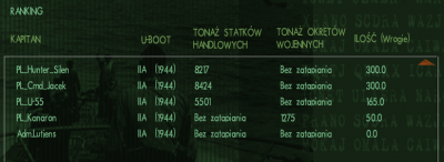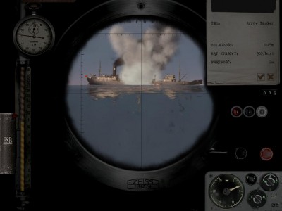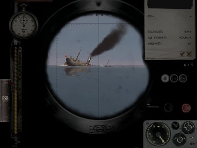 Więc tak, początek patrolu jak zwykle zacząłem od nasłuchu, ku mojemu zdziwieniu nic nie słychać... Płynę w stronę portu. Po godzinie patrolu widzę dym: uzbrojony trawler. Podchodzę pod wodą z pełną mocą silników, ale by mi uciekł, wynurzam się i go gonię. Po kilku chwilach mnie zauważył i ostrzelał. Zanurzenie i płyniemy na siebie. Jako, że nie płynął prosto na mnie wymusił trudną decyzję: salwa ze wszystkich wyrzutni z niewielkim rozproszeniem, jedna trafiła i poszedł na dno. Płynę dalej do portu, w ostatnich minutach zauważam nieruchomego tankowca, minuta do końca, strzelam, koniec patrolu, trafiły obie torpedy po czasie, ale go to nie ruszyło. Tak się ten patrol zakończył.