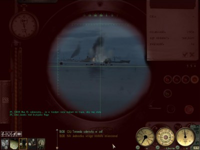 Posłałem dwie rybki do Medium Cargo, trafiła jedna i wyleciał w powietrze Szykuję następne dwie na Tanker Empire Celt, zbieram dane, rybki poszły i około 3 sekundy po wystrzeleniu torped ktoś mi go zatopił. 2 rybki w plecy.