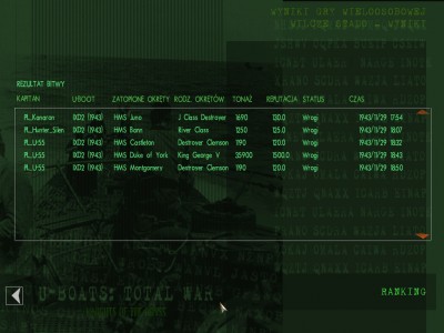 Z początku jak zobaczyłem ponad 50 km od miejsca rozpoczęcia grupy pomyślałem, że raczej do końca patrolu nie zdążę dopłynąć... Ale po 60 minutach już widziałem dym niszczyciela płynącego na mnie. Szybki zanurzenie, ustawienie się do niego dziobem i zaczął zygzakować, posłałem mu salwę trzech torped, trafienie, potem drugie (widać na zdjęciach), poszedł na dno. Kolejne niszczyciele przepływają w odległości 50-100 metrów obok mnie i nie wykryli, nie pingowali, nie zauważyli peryskopu. Posłałem torpedę do dd-eka co był już za mną, ale widać za głęboko była ustawiona albo on podskoczył na fali. Eskorta mnie minęła a ja mam przed sobą pancerniki Posyłam pierwszemu lepszemu rybkę (po ataku na dd-eka miałem tylko jedną załadowaną), trafiam i podpalam. Po przeładowaniu drugiej niestety był już kawałek dalej i nie trafiłem, obróciłem się rufą i też nie trafiłem. Przed sobą widzę T3, ale do niego też chybiłem. Cała grupa już odpływała, eskorta kawałek za mną się Finkiem zajmowała. Mam zgodę na wyjście na obserwatora i widzę coś co spowodowało, że pożałowałem decyzji wyjścia: nieruchomy pancernik (który i tak byłby do podziału). No ale co się stało to się nie odstanie. Obserwuję jak dd-eki obrzucali Finka (będąc co najmniej 1 km od niego), atak Zbycha na pancernika i zatopienie Huntera centralnym trafieniem w kadłub.