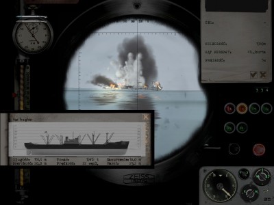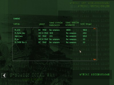 Wchodzę grzecznie od boku, wymijając DDki, co kogoś obrzucają. 1 torpeda do Troopa. Dostał. To posłałem drugą.... To trafiła wrak 2-3s po tym, jak ten został uznany za zniszczony. No to z boku staram sie coś trafić, ale Liberciak wylatuje, gdy do niego strzelać miałem, a jedyna zbliżająca się do celu (konwój skręca) wybucha przedwcześnie. No to wychodzę, ale CO mnie wykryła... nie zdążyłem się zanurzyć i dostałem z bocznej.... No i kolejny atak i LAG-SURV.... Ale zgłosiłem, aby to uznawać za KIA od tej pory.