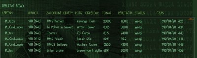 Lekki zwrot i atakuję frachtowiec Greenville. Okazuje się, że źle zidentyfikowałem jednostkę i na dno poszedł statek naprawczy. Wokół pływają same płotki, lecz dostrzegam krążownik pomocniczy. Wystrzeliwuję dwie torpedy, ale jak się okazuje wystarczyłaby tylko jedna.