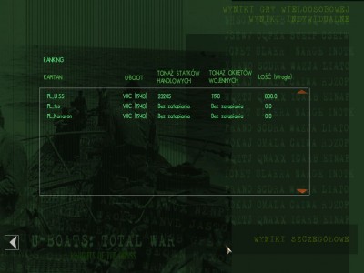 Od początku płynę na peryskopowej, prędkość 7 w. Na horyzoncie pojawia się niszczyciel, zwalniam do 1 w. Niszczyciel wyleciał w powietrze po trafieniu Zbyszka.