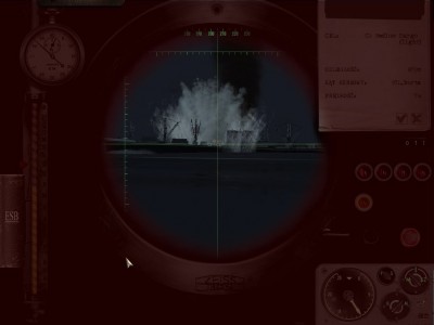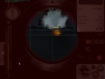 Jestem pod kiepskim kątem ustawiony, więc postanawiam podpłynąć na dogodniejszą pozycję. Wtedy pomyślałem, że taki ładny płonący, nieruchomy cel kogoś może zwabić i mi go sprzątnie. Ponad cała naprzód i prujemy pod wodą na dogodną pozycję, szykuję płytką, szybką, kontaktową rybkę. Zalewam wyrzutnię i robię ostatni zwrot, żeby mieć go mniej więcej na namiarze 0. Trochę ten zwrot trwał, a ja myśląc o tym żeby mi go ktoś nie zwędził postanawiam posłać rybkę wcześniej. Na namiarze 340 torpeda poszła, a ja się cieszę, że nikt inny go nie trafił. W tym momencie torpeda trafiła... ale nie moja ;< Po kilku sekundach dopiero moja weszła i go zatopiła.
