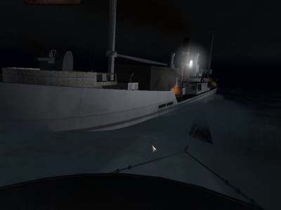 Dla śmiechu na kilka minut przed końcem wynurzam się i płynę na handlowce. Przepływałem obok naszego gdy był koniec patrolu. No to do abordażu Mam na celu jakiś mały handlowiec i jedną torpedę w wyrzutni przeładowaną, puszczam na oko i trafiłem Potem taranem go i wykończyli go handlowce. Eksplozja mnie nie zniszczyła mimo, że byłem do niego jeszcze przylepiony Potem kilka razy oberwałem i było po zabawie