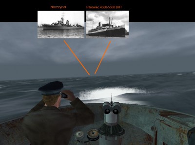 -Wypuścić 3 torpedy w niszczyciel potem 1 w parowiec, jak dojdą wtedy zobaczymy co dalej.