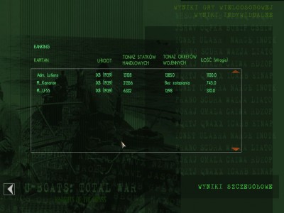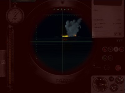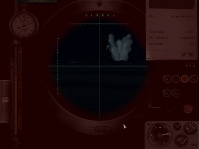 W peryskopie pojawił się Large Merchant, posłałem mu 2 rybki, jedna to przedwybuch... Druga trafiła, spory przechył na rufę, ale nie tonie. Posłałem kolejną rufową, przeszła obok. Przeładowała się dziobowa, posłałem do Cargo Steamera, niestety przyjął na siebie Crazy Finek i zatonął.