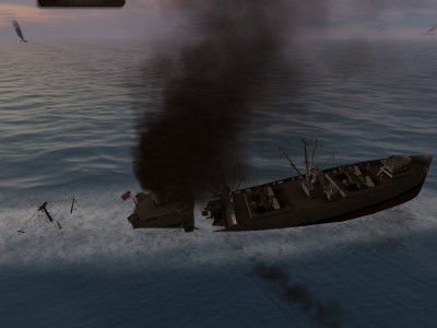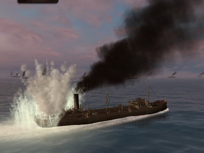 44 rok wzbudzał szacunek w załodze. Początkowo wysunięte chrapy zostały natychmiast schowane po tym jak na horyzoncie pojawiły się dymy. Powoli podchodziliśmy pod konwój. Niestety trzy torpedy wpuszczone do lotniskowca eskortowego nie trafiły. Za to kontratak eskorty wymusił szybkie zanurzenie i unik, Po kilkunastu minutach udało się zgubić eskortowce i zaatakować ponownie. Uszkodzony tankowiec odpłynął, ale w głębinach zatonął liberciak.