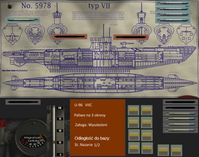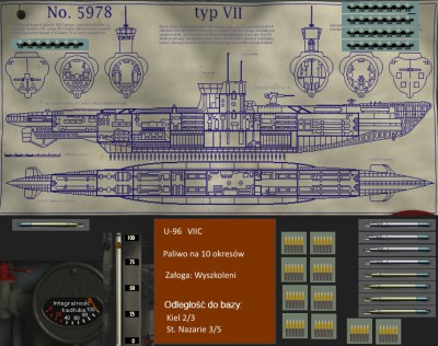 U-96 oczekuje na załadunek torped (tylko puste pola) i wyznaczenie trasy do ruszenia. (mapka będzie w głównym temacie, jak skończę wszystkie U-Booty słać w morze)