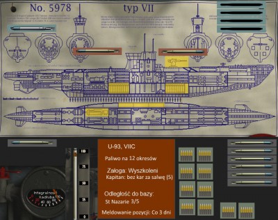 Przygotujcie okręt do wyjścia w morze w nocy z 21 na 22 grudnia 1940 roku. Waszym głównym celem będzie topienie Alianckiej Żeglugi w Kwadratach AK1, AK2 i AK3. Zanim jednak przystąpicie do misji macie udać się do kwadratu AD73 i zostawić tam powierzone na wasz okręt zaopatrzenie, oraz paliwo w ilości [tu paliwo na 1 okres] U-55, który po niepowodzeniu misji U-49, rozpaczliwie potrzebuje zaopatrzenia. Na misję udacie się wraz z U-95 kapitana Matsumo.