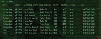 Bomby uszkadzają kompresor, kiosk, pokład. Ekipa remontowa pracuje na pełnych obrotach i robiąc uniki powoli wymykam się Brytolom. Ciężko jest bo zaledwie 100 metrów głębokości mam do dyspozycji. Ucieczkę planuję tak by podejść bliżej pod kolejne frachtowce które słychać na hydro. Co jakiś czas próbuję wyjść na peryskopową, ale jestem zaganiany z powrotem pod wodę. W sumie poluje na mnie 5 jednostek. W końcu po godzinie ucieczki udaje się wyjść na 14 metrów i zaatakować ponownie. Tonie tankowiec:
