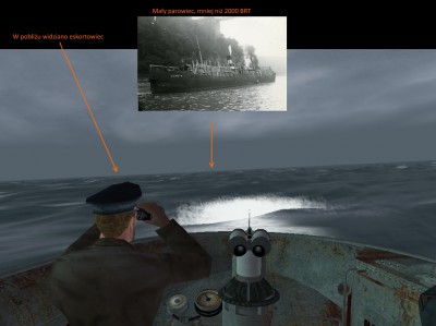 Gdy załoga zameldowała gotowość, kapitan spojrzał jeszcze raz w stronę z której spodziewał się eskortowca. Biały ślad po biegu torpedy na pewno zdradzi ich obecność.