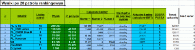 grunt to cieszyć się z małych rzeczy - dla mnie sukcesem jest pole "dobra passa" - już 5 patroli przeżytych z rzędu . poprawię przeżywalność, to przyjdzie czas na tonaż