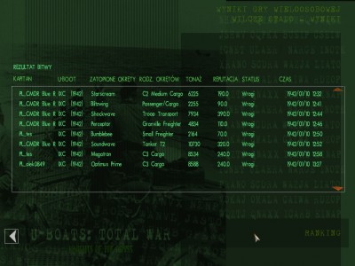 No widzisz ja miałem pecha bo trafiłem tylko na tamte maluchy.Potem uciekałem na całej na przód zeby nie nadziać się na zabójców Tesa i UnnAmmEdd-a bombek spadło więc zeszedłem na 160 i sobie idę.Potem się wynurzam i wachta widzi okręt (kuter torpedowy)a Że 5 min do końca no to obsadzić 105mm i się tak bawiłem.Dostał 10 ppanc stracił działko i zwiał.