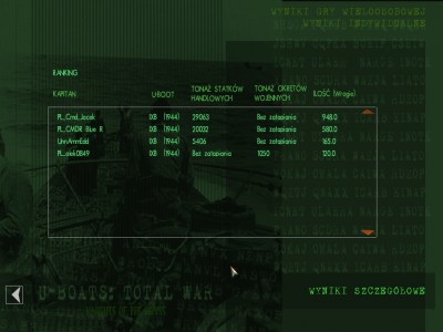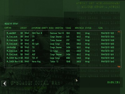 I efekt tej salwy przeszedł moje oczekiwania. Znaczy T2 uciekł, za to 2 torpedy (zapewne T3, bo FAT chyba zawróciły) trafiły 2 cele zatapiając je. Akustyk trafił eskortowca, ale ten nie zatonął. No to ja z 20k jestem zadowolony z patrolu. Wskakuję na 1 miejsce i mam najlepszą (i to otwartą) karierę sezonu.