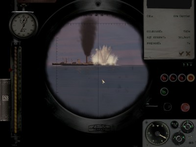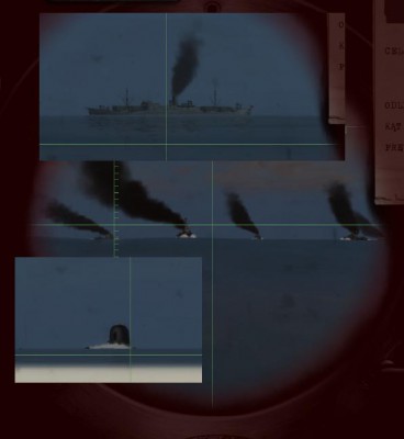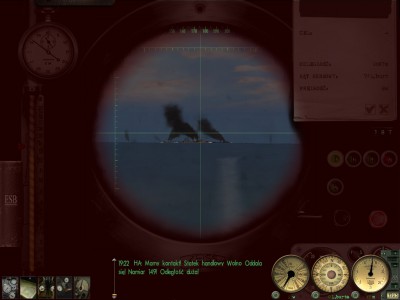Następnie dokładnie się rozglądam i się wynurzam lecz brytole obsadzają działo co kończy się 24% integrałki, na peryskopowej staram się wyjść z konwoju korzystając z hałasu tworzonego przez frachtowce.