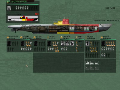 Przecieki praktycznie do zatamowania. Tak więc sytuację w zasadzie opanowałem, tylko się pogarsza... Przeciek w wyrzutni zatamują zanim przedział zostanie zniszczony. W przedziale radiowym spokojnie sobie poradzą. Ale w kabinach jest gorzej: sytuacja opanowana minutę przed zniszczeniem, przecieki powstrzymają za 3 minuty, ale ta minuta stoi w miejscu.
