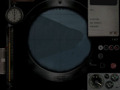 Z początku płynę na peryskopowej 4w. Gdy namiary na hydro były wyraźniejsze zwolniłem do 1-2w. Po dłuższym czasie w mgły wyłania się dd-ek. Nie zygzakuje, przejdzie obok. Niestety jednak mnie złapał. Boczne bomby wyrzuciły mój dziób na powierzchnie. Nie widział tego, ale ja miałem lekko uszkodzone wyrzutnie dziobowe i 56% integralności.