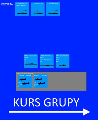 Ps. Nie musisz "1 pole". Wystarczy kierunek. Chyba, że DOKŁADNIE chcesz to pole przed konwojem (plus to bliżej Norwegii) przeczesywać (i to jest twoje założenie) i polować na ewentualne U-Booty Tu rozumiem, że właśnie dokładnie ma być ubezpieczenie konwoju, aby U-Booty do niego nie dopełzły, zgadza się?