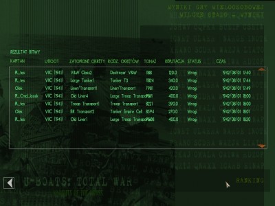 Taa :D. Wywalilo mnie gdzies z boku. Wchodzac do konwoju wylonila sie szuszarka prosto na moim kursie. Odbilem w prawo i mysle ze przejdzie mi za dupa, a tu konwoj zmienia kierunek ona tez, znowu wprost na mnie. :schock Jest blisko wlacza syrene i przygotowuje sie do garbowania. Ja na ch.. kacie ani zwiac ani obrysc sie rybka. Szybka i szalona decyzja. Zmienjszam glebokosc podczas przelotu suszarki. Zzzzzzziuuuttttt. Bomby, nie ma szkla, powaznie uszkodzona dupa, jest dobrze. DD'ke robi swoje koleczko, na to czekalem. Odpalam rybke, zemsta jest slodka. Czas tez sp.... jak naszybcie z miejscowki bo jedynego co mozna sie spodziewac to odwet husari. W poblizu nawija sie T3, opalam 2, obie celne, chwile radosci, maci pinganie. O k.... a dlaje na pelnej. Detekcja ostre zanurzenie, znowu dupa przeorana, ale gubi kontakt. Potem juz spokojnie wynurzenie wprost na Troopa, kolejne 2 torpedy. Sonar zglasza oswietlenie, a ja zatopienie. Potem niecelna do Amunicyjnego i na koneic przygoda z wielgachnym troopem, ktorego wzialem poczatkow z OL'a (takie male zdziwienie jak magnetyk przeszdl pod i nie odpalil). Ktos lutnal do tego troopa, ale jako ze to nie ranking to nie bedziemy sie bawic w dzielienie skory na niedzwiedziu. :lol