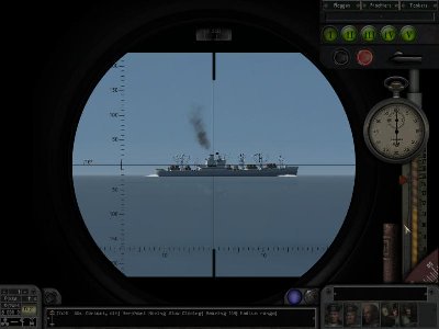 Patrzysz na okręt, określasz jak się ma do podziałki w peryskopie. Używasz przyrządu podobnego do suwaka logarytmicznego (tylko że na bazie koła) by otrzymać dane wyjściowe. Dla mnie miodzio.