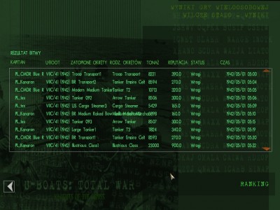 Z 3500 m. wystrzeliłem 3 rybki do lotniskowca, z 4000 metrów do pancernika jedną. Na minutę przed planowanym trafieniem... ktoś oba okręty trafił... Cztery torpedy poszły...
