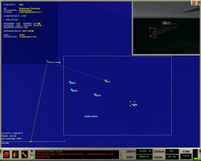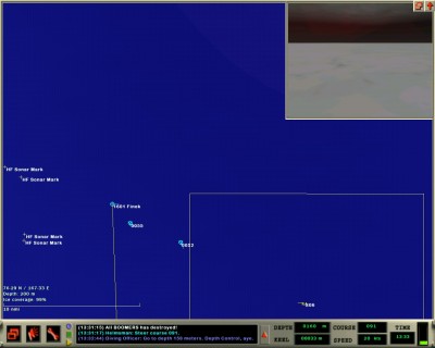 Płynąłem blisko delty, starając się wykryć kogoś... Ale poruszałem się zbyt wolno. I gdy ja pokonałem około 15-20 mil, Pepe pokonał ich prawie 2x więcej. I w konsekwencji pierwsze co wykryłem to torpedy Pepe topiące moją Deltę. Na dodatek jedna z torped zaczęła mnie pingać, więc odpaliłem 2 torpedy (aktywna i pasywna) mniej więcej w kierunku wroga i zrobiłem unik. Niestety, Pepe nie strzelał do mnie. Udało mnie się w miarę namierzyć Pepe, ale był na krańcu mojego zasięgu.