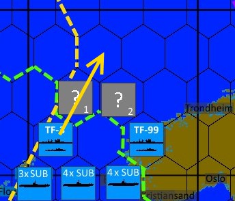 TF99 do HFC, TF3 X Wykryci przez wodnosamolot z Scheera X Niemcy nas wyminęli odcinamy im drogę do Portów. X Niech TF3 rusza za nimi X Zagrożeni przez lotnictwo Norweskie X nie ma możliwości wydysponowania niszczycieli X Proponuję wykorzystać w akcji niszczyciele z Loch Ewe XXX