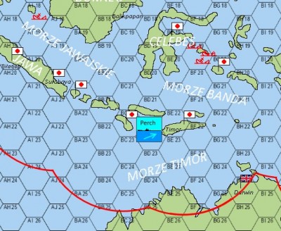 ComSubSoWesPac do USS Perch (SS-176) X Zmiana rozkazów X Wasza nowa pozycja patrolowa to obszar Morza Molucca X W strefie patrolowej spodziewany jest wkrótce wzmożony ruch związany z przerzutem wojsk okupacyjnych do bariery Malajskiej i wycofaniem wojsk uderzeniowych X Podczas działań w strefie nie podejmujcie żadnych działań bojowych przeciwko japońskim statkom handlowym X Dozwolone cele ataku to eskortowane transportowce wojsk, konwoje, zespoły bojowe (krążowniki, lotniskowce i pancerniki dop. Finka) X Po pierwszym ataku, o ile nie będzie podejrzenia, że Japonia nie dowiedziała się o ataku, celem dalszych ataków mogą być wszystkie jednostki X W przypadku podejrzenia, że wróg nie dowiedział się o obecności okrętu, wytyczne dotyczące dozwolonych celów pozostają w mocy XXX