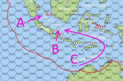 Za to najgłębsze i najszersze wody obiecuje Morze Banda... zresztą nim wracaliśmy ostatnio. (C). Ale to i najdłuższa droga.