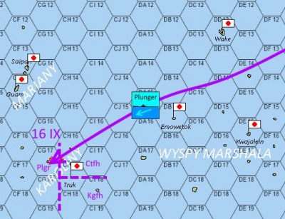 Kolejny dzień upłynął na szczęście bez samolotów, podobnie jak następny. Brak patroli lotniczych 15 września był jednak zaskakujący, gdyż USS Plunger zbliżył się już na około 150 mil od bazy Truk. Wyglądało na to, że wywiad się mylił, a skuteczniejsze patrole były na wyspach Marshalla, niż w okolicach Truk.